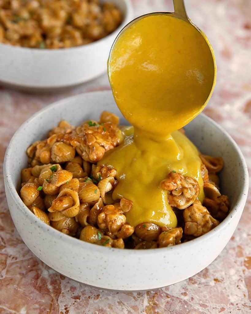 Not a fan of tempeh (sorry all you tempeh lovers!) but I may give this a try with garbanzos or tofu. And I’m definitely looking forward to making the cheese sauce!