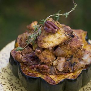 […] acorn squash, I used Isa’s recipe for Cornbread Stuffing with Pears and Pecans and just substituted some ingredients based on what I had. For example I use rosemary instead of […]