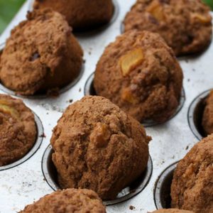 Muffins are my favorite way to bake something quickly using whatever I’ve got on hand. While I love those softball sized sunny-hued white flour and sugar numbers, I have a definite preference for the wholesome, healthy variety, especially for showcasing fresh fruit. These babies are made with spelt flour, providing a rustic, get-it-all-over-your-shirt crumb and a great wheaty flavor. And since we all hate overmixed, rubbery muffins, spelt flour is a great choice. It has such a low gluten content that the dangers of overmixing are diminished, making it perfect for the trepidatious baker. I also use applesauce for moisture, a lower fat content, and to keep the sugar to a minimum.