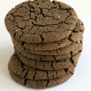 - Roll dough into walnut sized balls. Pat into the sugar topping to flatten into roughly 2 inch discs. Transfer to baking sheet, sugar side up, at least 2 inches apart (they do spread). This should be easy as the the bottom of the cookies should just stick to your fingers so you can just flip them over onto the baking sheet. Bake for 10 to 12 minutes, they should be a bit spread and crackly on top. Remove from oven and let cool for 5 minutes, then transfer to a cooling rack to cool completely.