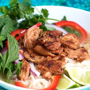 This dish isn’t an attempt to recreate any dish in particular, it was just to satisfy my craving for Vietnamese flavors: Lemongrass, lime, mint, ginger…if matzoh ball soup is Jewish penicillin then this noodle bowl is a flu shot.