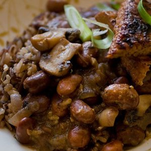 To play up the earthiness, I love to serve this with a wild rice blend (again, something I cook a big pot of and use throughout the week) and grilled tempeh. The tempeh is marinated in basically the same ingredients: lemon, olive oil, garlic and thyme (you can use this recipe as a guide if you like) and then grilled. A roasted veggie like cauliflower or broccoli is perfect here, too.