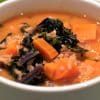 Feeling sick as a dog with a cold and needing something hot, vegan, and nourishing I made this soup. Wow! A bowl of this soup will make you feel all better, give you a big hug and a kiss on the forehead, smooth your hair off your fevered brow … then tuck you in all nice and cozy under a flannel comforter.