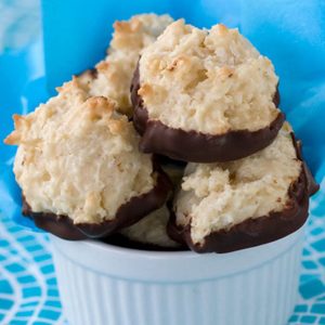 A crispy coconutty outside and moist sweet inside. That sounds good, right? Well, what if we told you it’s also dipped in chocolate? These are irresistibly adorable, nugget sized morsels that look like they could double as the currency of magical forest creatures. A touch of almond extract really brings out the coconut. For variety, try the cocoa variation and have a double chocolate extravaganza.