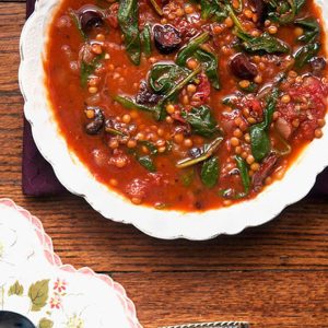 Smoky Tomato Lentil Soup With Spinach & Olives