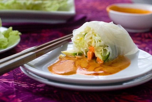 What other fillings can I use? Rice vermicelli, sliced mango, cucumber, bell peppers, edamame, baked tofu, or Thai basil. Pretty much any crunchy raw vegetable or fresh herb works.