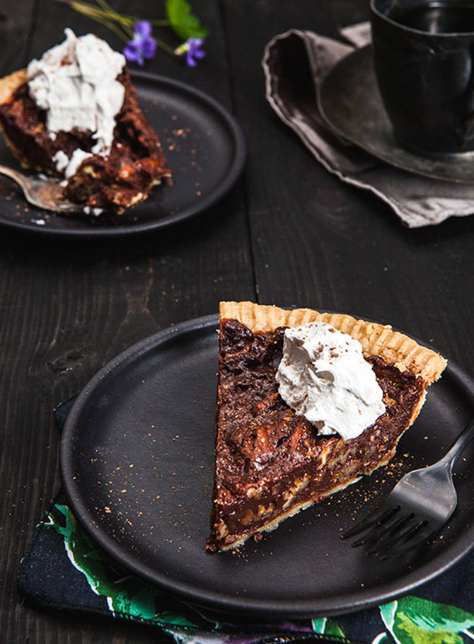 This is elbow-your-Great-Aunt-Dora-out-of-the-way-to-get-the-last-slice delicious! Chocolate should most certainly be represented at the Thanksgiving table, and pecans are the ideal plus-one to get it into the party. This pie is really rich and caramelly, with all that toasty pecan nuttiness studded throughout. Don’t worry, once you share a bite of your slice with Great Aunt Dora, she will totally understand all that elbowing.