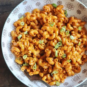 Let’s just cut to the chase. Or just cut to the cheeze, har har. There are a lot of vegan macs out there, but this might just take the noodle. It’s nut-free and that’s cool in case you have allergies but also I am in love with it. It just might replace my cashew based staple mac sauce. Yes, I am covering my cashew’s ears as I say that.