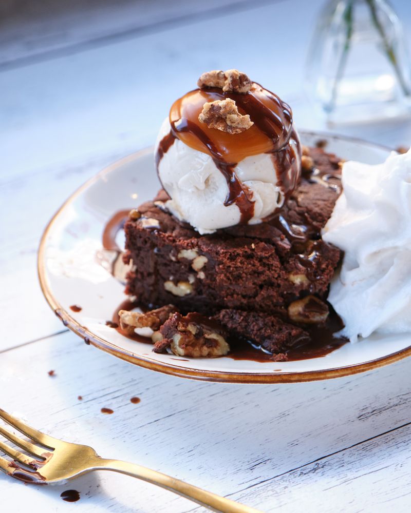 If you like a brownie that needs a glass of milk when you eat it, is as chocolatey as can be, and gives walnuts in every bite, these are those brownies. The melted chocolate and coconut oil give them that ultra-rich, almost truffle-like quality, while the applesauce keeps them moist without making them oily. Cornstarch helps with the chew. It’s a whole system and it works. The chocolate hits every taste bud, travels to the back of your throat, up into your nose, and explodes in your brain. That kind of vegan brownie.