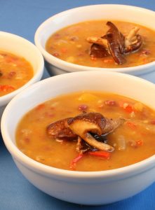 Acorn Squash, Pear and Aduki Soup with Sauteed Shiitakes