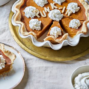 Preheat oven to 350 degrees. Add the pumpkin, maple syrup, aquafaba, coconut oil, cornstarch, cinnamon, ginger, nutmeg, cloves and salt to a blender. Blend for about 3 minutes (less if using a high-speed blender), until light and fluffy. It should increase by 20 percent to 25 percent in volume.