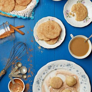 Roll dough into walnut sized balls. Pat into the sugar topping to flatten into roughly 2 inch discs. Transfer to baking sheet, sugar side up, at least 2 inches apart (they do spread a little). This should be easy as the the bottom of the cookies should just stick to your fingers so you can just flip them over onto the baking sheet. Bake for 10 to 12 minutes, they should be a bit browned on the bottoms. Remove from oven and let cool for 5 minutes, then transfer to a cooling rack to cool completely.