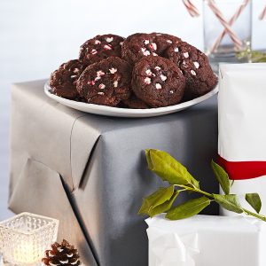 Add one cup of the flour, all of the cocoa powder, the baking soda and salt and mix well. Mix in the chocolate peppermint chunks and then add the final cup of flour and mix until it firms up. You might need to use gloved hands to get it fully incorporated.